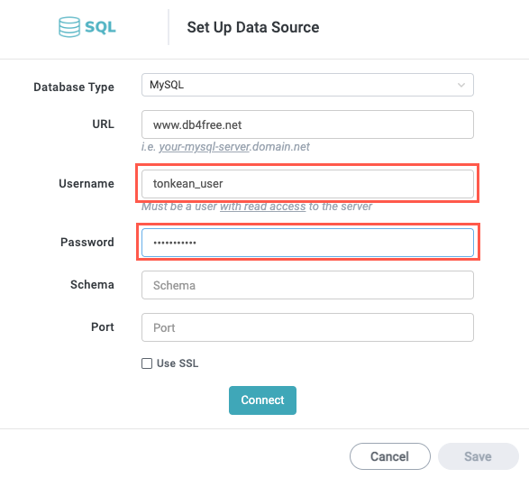 To use MySQL in Tonkean, you must first connect it as a data source: